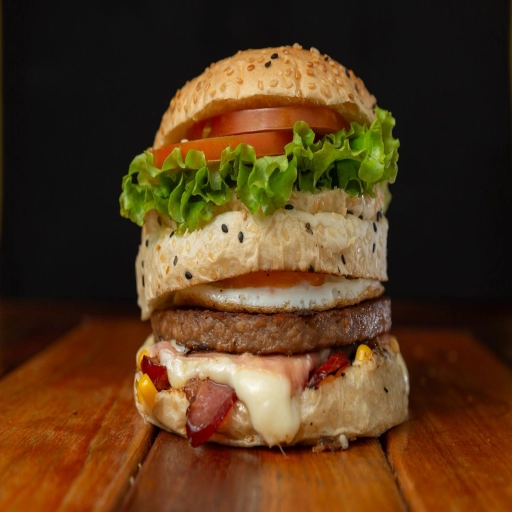 Pão, 1 carne sabor picanha 120g, ovo, mussarela, presunto, molho baconese, batata palha artesanal, milho, alface, tomat... Ver completo