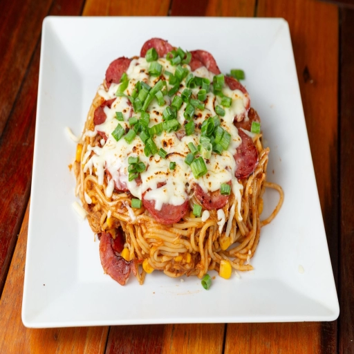 Pão, molho, salsinha, frango desfiado, mussarela, milho, vinagrete, passas, batata palha artesanal e molho da casa.
